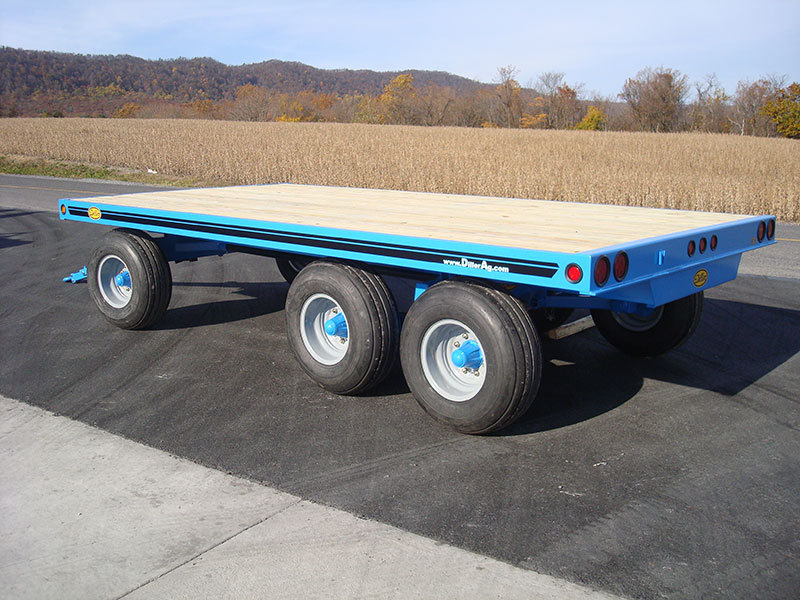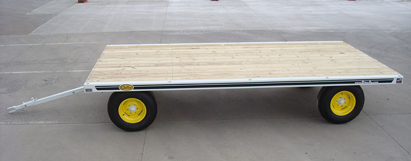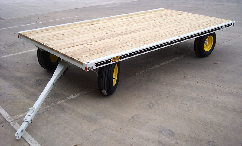 This build went to a government contractor responsible for aviation maintenance at a government airport. They initially wanted flatbed trailers to haul pallets of parts & equipment, but they decided to go with traditional wagon running gears and flatbeds because of the ease of use and the quick parking of a wagon versus unhooking trailers and cranking jack stands. Their wagons were standard duty flatbeds with 8 ton running gears.