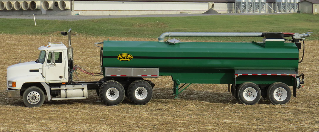 For transporting manure, as well as field spreading, nothing beats a NEW Diller semi tanker!